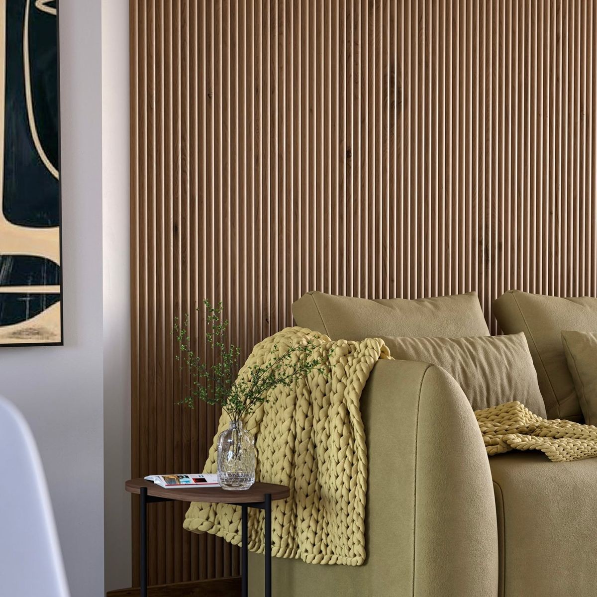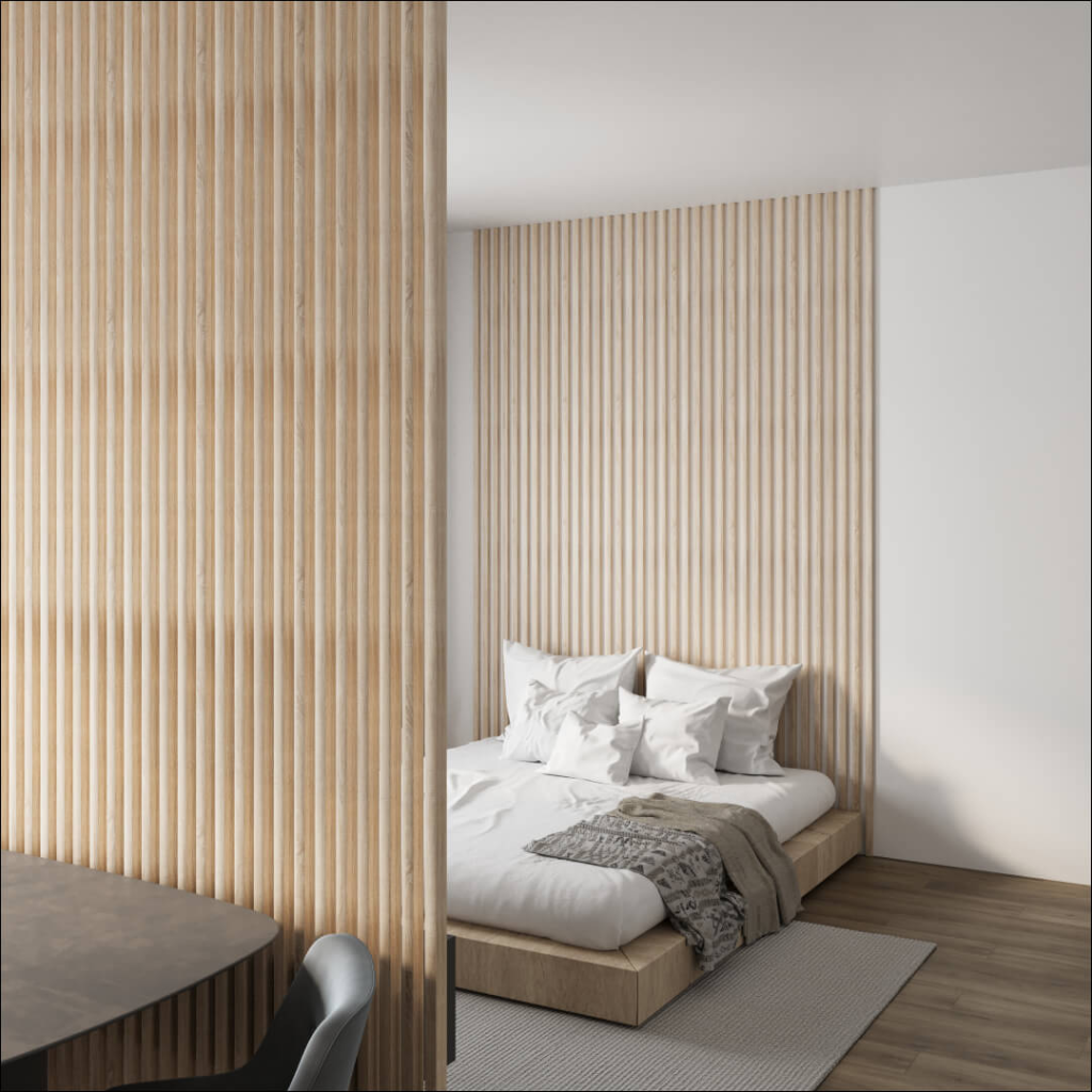 - Важно попасть в пропорции: рейки должны поддерживать мебель, а не спорить с ней.