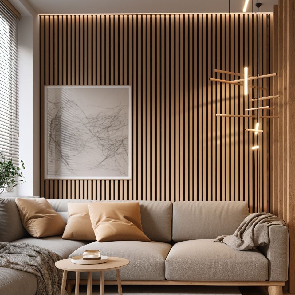 Интерьерные рейки (вертикальные ламели) — это способ сделать стену рельефной, добавить высоту и архитектуру.