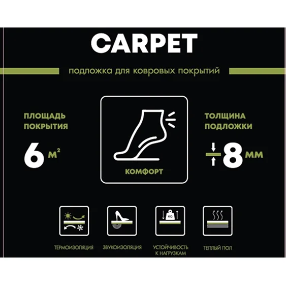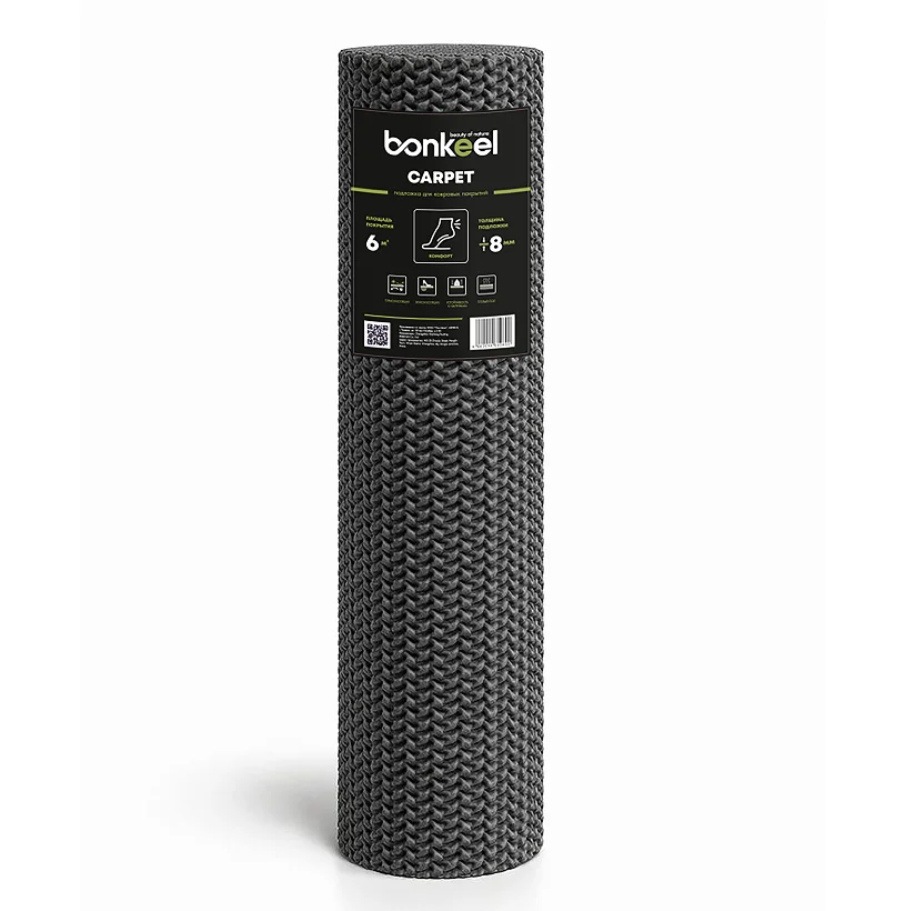 Эластичная резиновая основа обеспечивает хорошую шумоизоляцию, комфорт при ходьбе и увеличивает срок службы напольного покрытия. Подложка устойчива к деформациям, подходит для офисов, гостиниц и квартир, где требуется повышенная износостойкость и амортизация.
